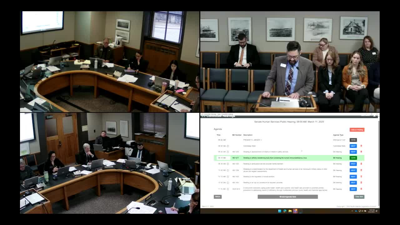 Committee hears wide support to repeal North Dakota’s HIV‑specific felony (HB1217)