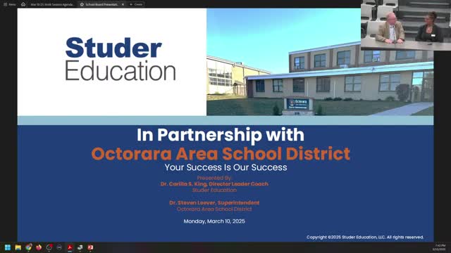 External coaches present staff and stakeholder survey results; district to use scorecard to guide priorities