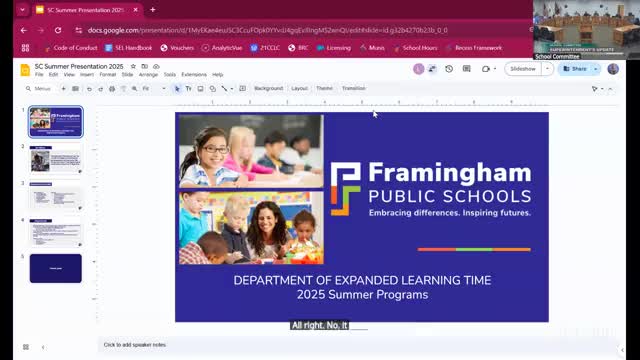 Framingham School Committee unanimously approves 2025 summer program with sliding-scale fees