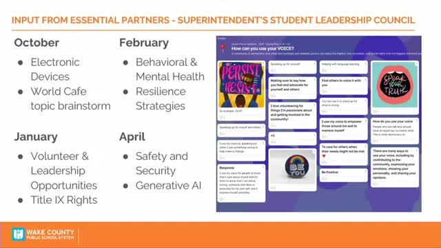 Student leadership council reports peer resilience work and advises district on student issues