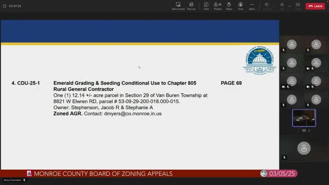 BZA grants conditional use for Emerald Grading and Seeding on rural property with after‑the‑fact permit condition