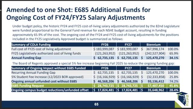 NSHE says historic COLAs created recurring shortfall; asks state for recurring support