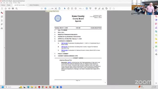Kane County Board approves zoning rezonings and a slate of resolutions; multiple votes recorded