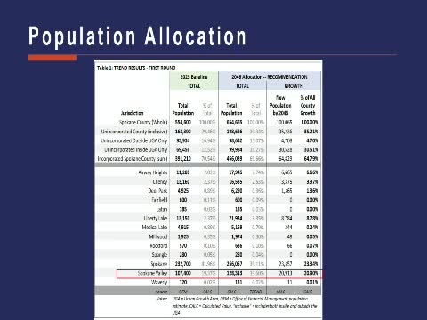 Spokane Valley planning staff: city’s current buildable land will not absorb projected 20‑year growth; comp‑plan update next step