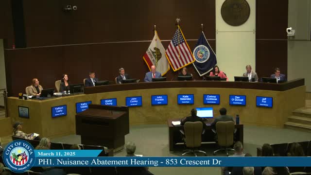 Vista council declares 853 Crescent Drive a public nuisance, authorizes abatement