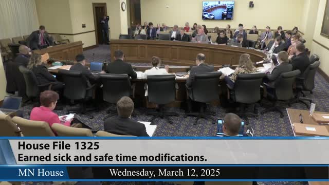 Committee reviews wide-ranging changes to Minnesota—earned sick and safe time; amendment adopted and bill laid over