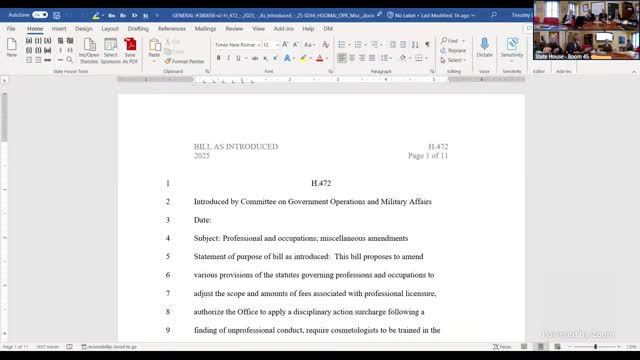 Committee previews H.472: fee increases, new surcharges and enforcement changes for professional licensing