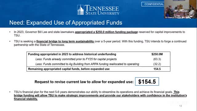 TSU finance committee outlines bridge-to-sustainability plan; proposes 4% in-state tuition increase, 20% freshman scholarship cap and funding flexibility