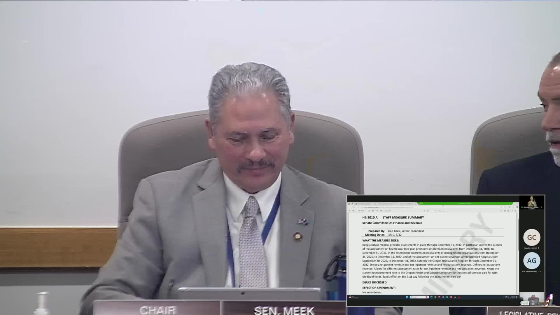 Senate committee hears testimony on bill to extend hospital and insurer assessments, reinsurance program