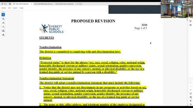 Board moves nondiscrimination and personnel-policy updates to second reading