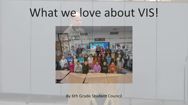 Sixth-grade student council members present school highlights to Victor CSD board