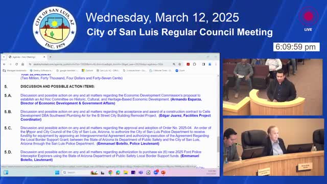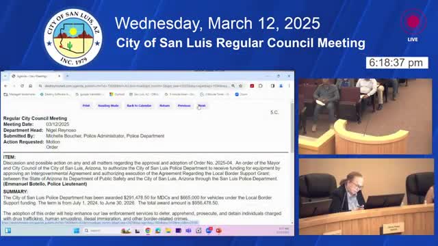 San Luis adopts $956,478.50 border-support grant and approves purchase of six police SUVs