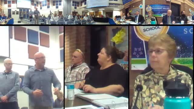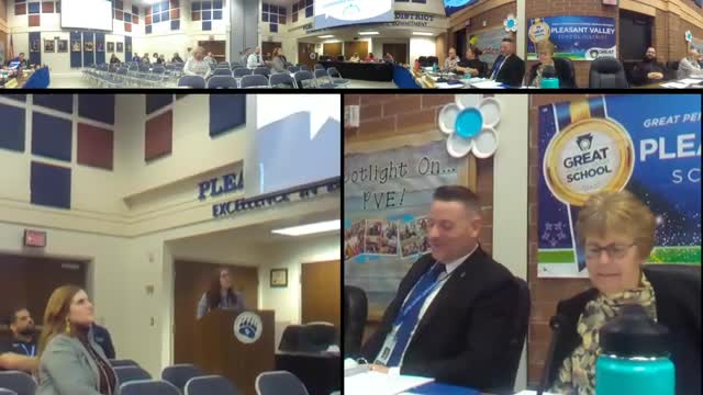 Pleasant Valley Board approves routine agenda items, personnel and finance motions; community raises questions on procurement card and program-of-studies addend