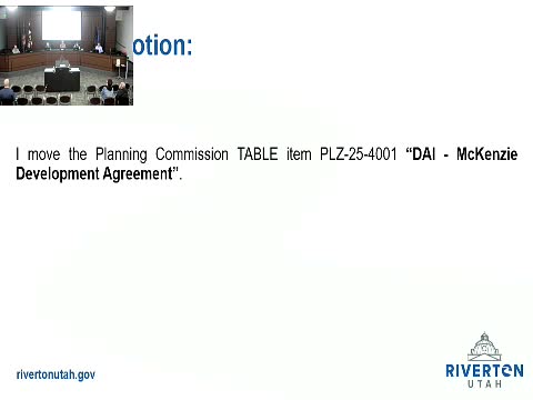 Commission tables McKenzie development-agreement item to allow re-noticing