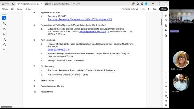 Parks staff report summer hiring plans, Malley closure and Bates Logan progress