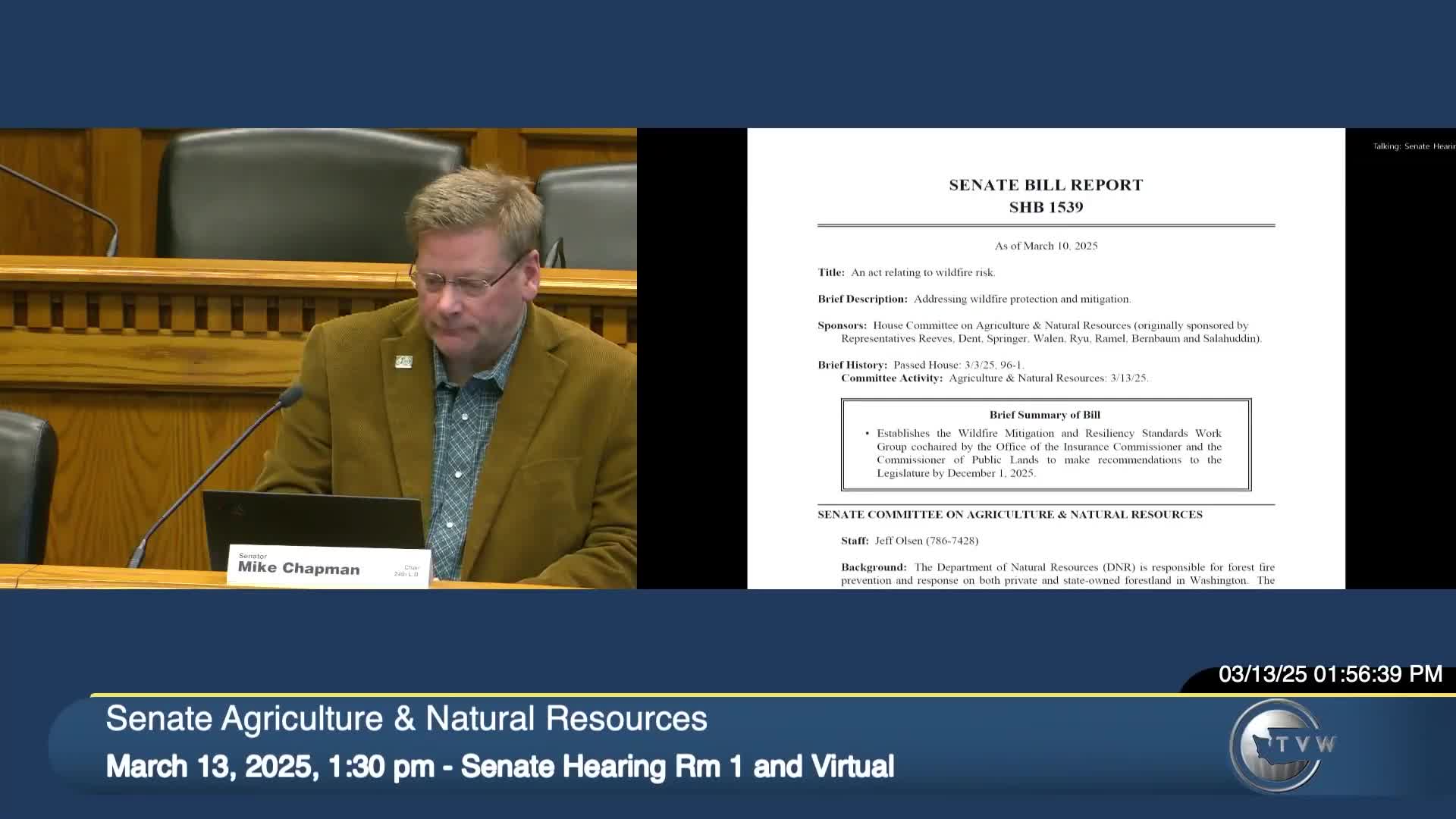 Bill would create wildfire mitigation and resiliency standards work group to align DNR and insurance practices