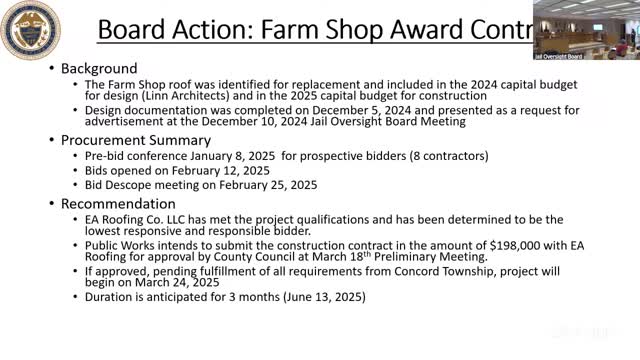 Jail Oversight Board backs county council approval for Farm Shop roofing contract; one member objects