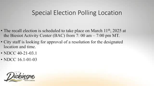 Dickinson City Commission approvals: recall polling place, licenses, contracts and multiple SRF loans