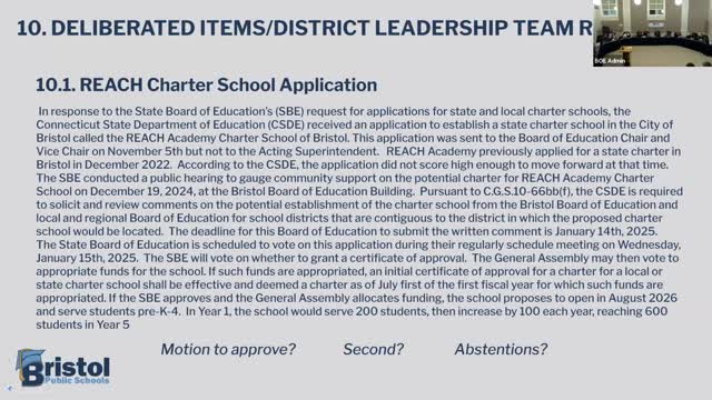 Bristol Board of Education opposes REACH charter school application after public hearing and review