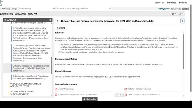 Carmel Unified board approves second interim budget report, affirms positive certification