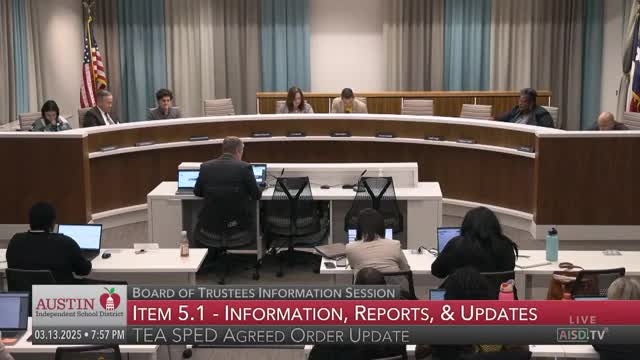Austin ISD updates trustees on TEA agreed order work and special‑education data system migration to Frontline