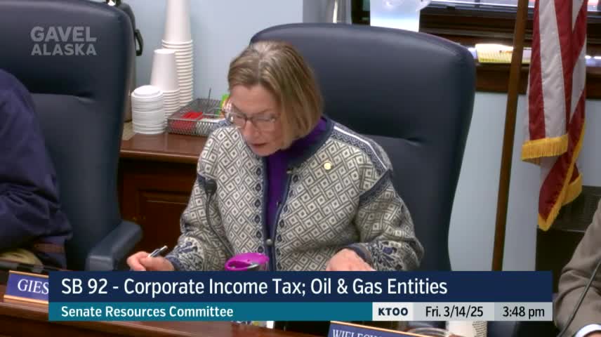 Committee debates SB92 to tax oil & gas S‑corporations; tax manager and CPA present fiscal modeling as public commenters weigh in