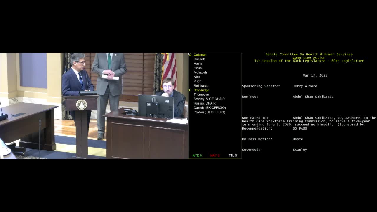 Senate committee forwards Dr. Abdul Khan’s reappointment to Health Care Workforce Training Commission