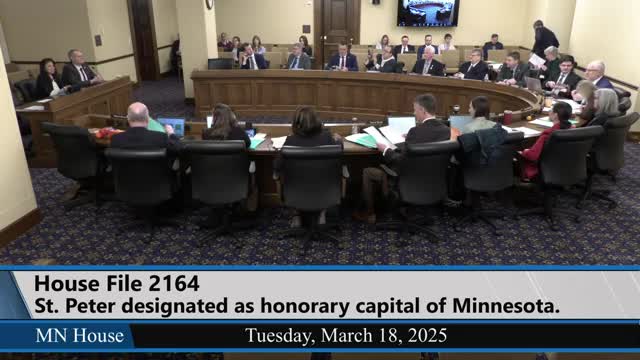 Committee lays over bill to name St. Peter honorary state capital; backers cite tourism and local history