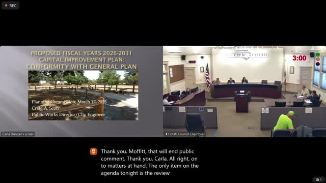 Planning commission finds 2026–2031 capital improvement plan conforms with general plan