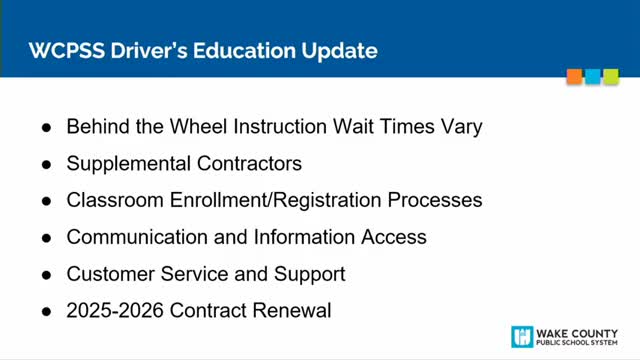 Wake County reports uneven driver education wait‑time improvements; DPI training gaps flagged