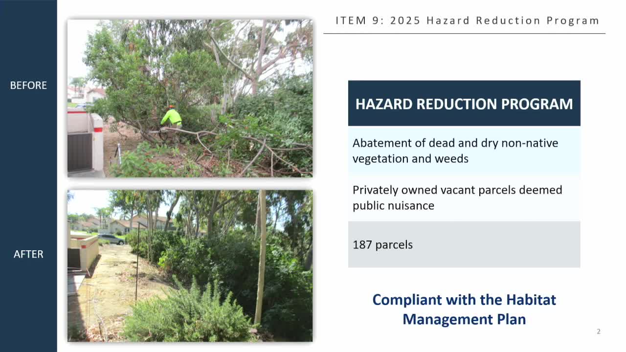 Carlsbad council adopts resolution declaring weeds, rubbish and refuse on private property public nuisances under hazard reduction program
