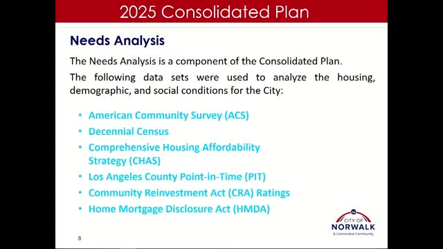 Norwalk reviews draft five-year consolidated plan and FY 2025–26 annual action plan; public services and capital projects proposed