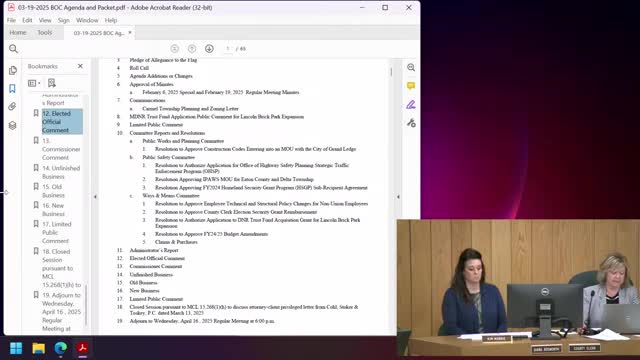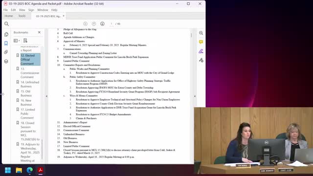 Eaton County commissioners approve multiple resolutions including park land grant application, public safety and emergency-alert agreements