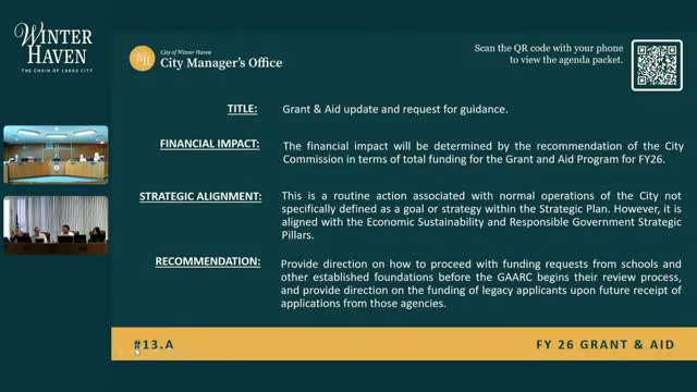 Commission gives guidance to Grant & Aid committee: exclude schools and established foundations, consider legacy partners and a 10% budget uptick