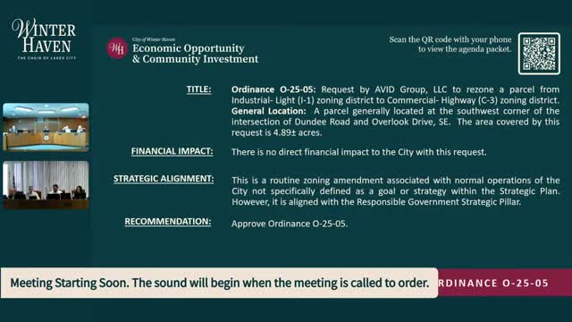 Commissioners review rezoning request for parcel at Dundee Road corner; no changes since first reading