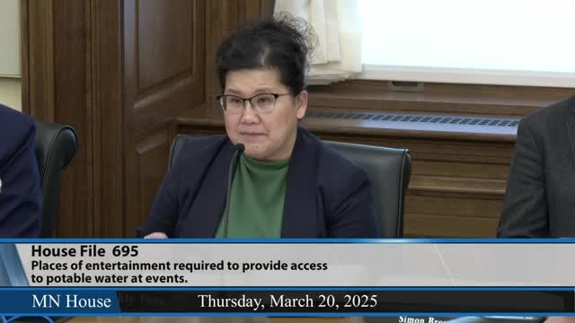 Committee debates bill to require free potable water options at places of entertainment; adopts amendment and lays bill over