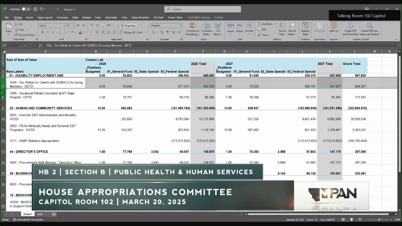 Appropriations panel reviews DPHHS budget; FMAP decline, Medicaid caseloads and a 3% provider-rate increase drive costs