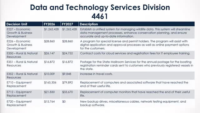 Nevada Department of Wildlife seeks to centralize scientific data and modernize permit processing; estimates $1.26M per year for initial modules