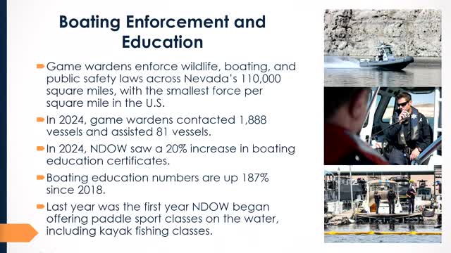 Nevada Department of Wildlife requests $500,000 per year in general fund for public-safety support, presents $77.8M biennial budget