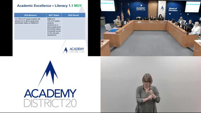 District 20 reports midyear gains in third-grade reading and steady math pass rates; attendance remains below goal at secondary levels