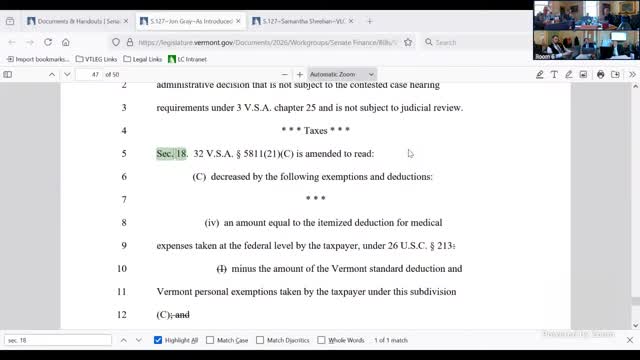 S.127 would alter medical-expense deduction for continuing‑care fees and freeze value of new ADUs, supporters say