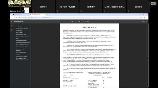 Board authorizes Land Conservation to apply for up to $229,680 in DATCP/DNR joint allocation grant