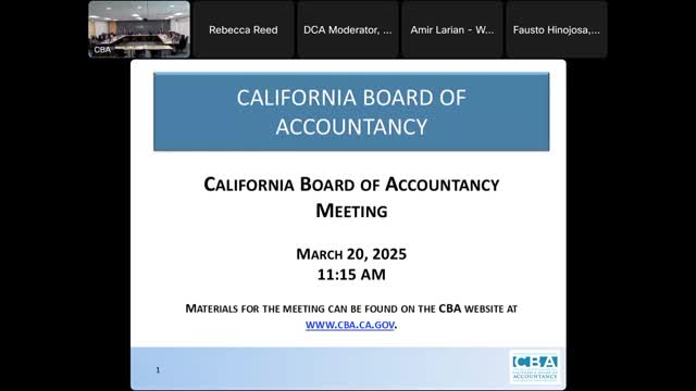 California Board of Accountancy moves to amend AB 1175, approves comment letter on AICPA/NASBA exposure draft