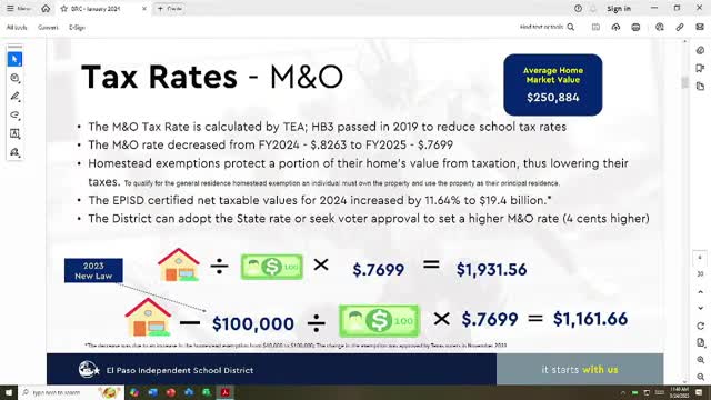 EPISD projects lower tax rate, homestead exemptions and bond defeasance will shape 2026 budget outlook