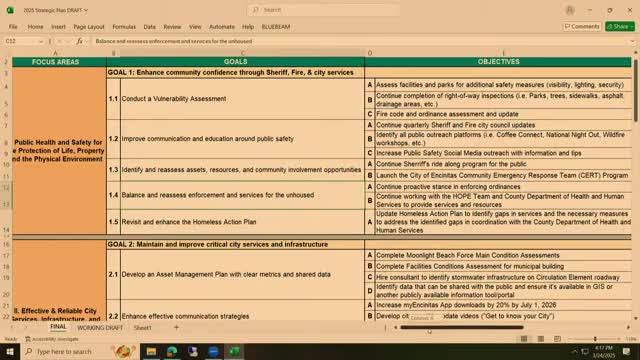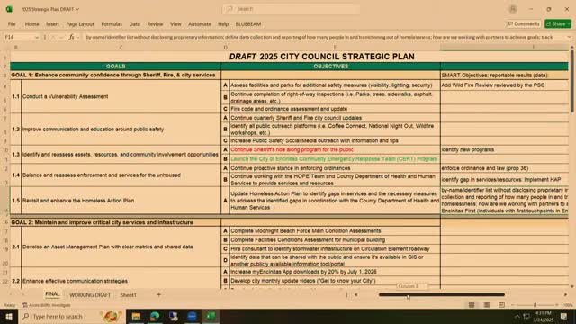 Encinitas council reviews draft 2025 annual objectives, schedules follow-up
