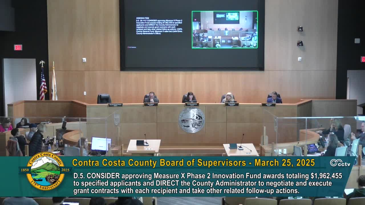 Board approves Measure X Phase 2 innovation awards; panel recommendations, $1.962M in grants and public objections on perceived racial imbalance
