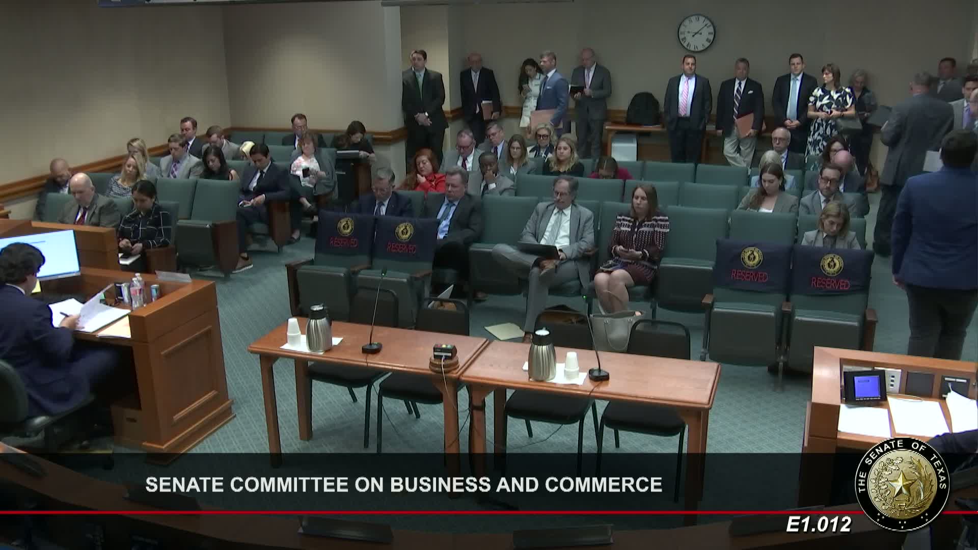 Senate Business & Commerce committee reports multiple bills favorably; several measures left pending