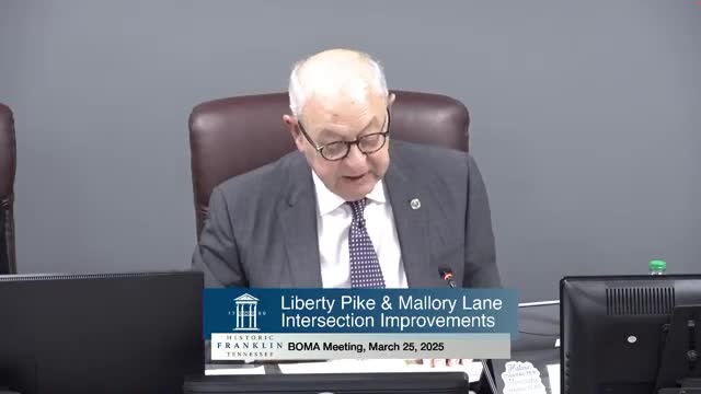 Board approves $579,500 design contract for Liberty Park–Mallory Lane intersection; debate continues over roundabouts