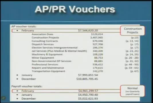Committee forwards payments, payroll vouchers and February financial report to consent agenda