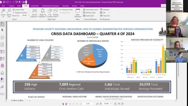 Spokane County reports Q4 2024 crisis-line and high-utilizer counts; dashboard redesign planned